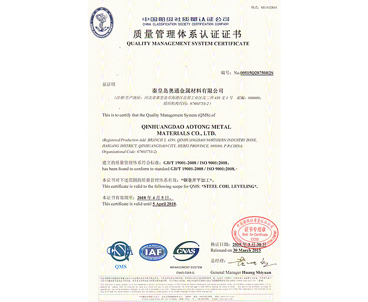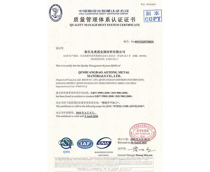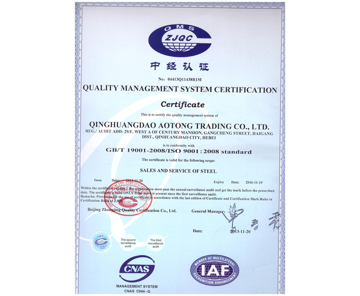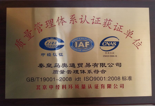 Certified quality management system certification unit